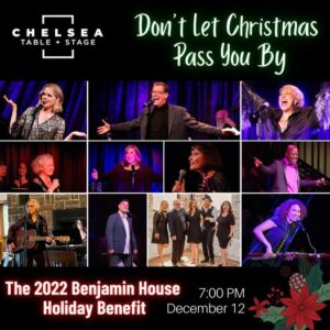 Monday, December 12th at 7PM, the annual Benjamin House Holiday Benefit returns LIVE and In Person for the first time since 2019 with an all-star lineup of talent gathered to honor and celebrate Benjamin House, a home for mentally challenged adults in Elizabeth City, NC. Featuring legendary cabaret star Karen Akers, MAC Lifetime Achievement recipient Marta Sanders, luminous Broadway star Amy Spanger (Tick Tick Boom, Rock of Ages, Chicago, Kiss Me Kate), the sensational tight harmony vocal quintet Marquee Five and a host of others, this season’s edition, Don’t Let Christmas Pass You By, will be performed for the first time at Chelsea Table + Stage.